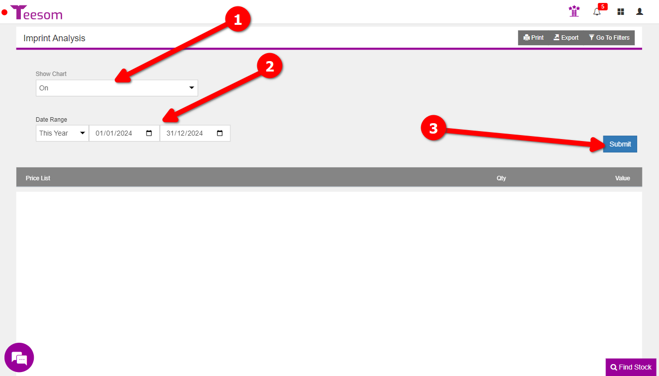 To find the Imprint Analysis report, go to the ‘Main Menu‘ and click “Reports“ and then select "Imprint Analysis."