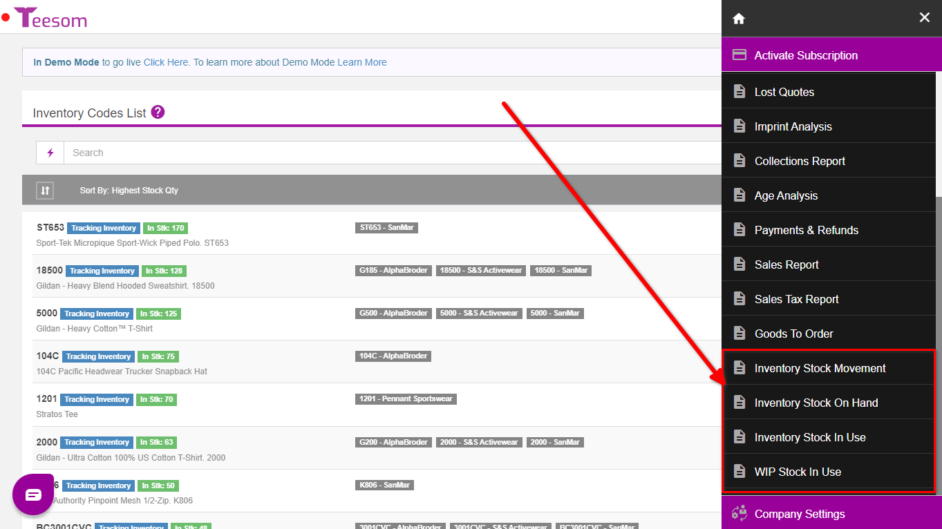 Inventory Stock On Hand Report: Displays the stock you have available right now.