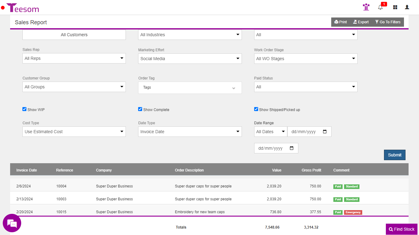 To find your reports, go to the 'Main Menu' and select "Reports." From there, you can access the report screens (you may need to scroll to see them all). Teesom currently provides the following inventory-related reports: Inventory Stock Movement ...